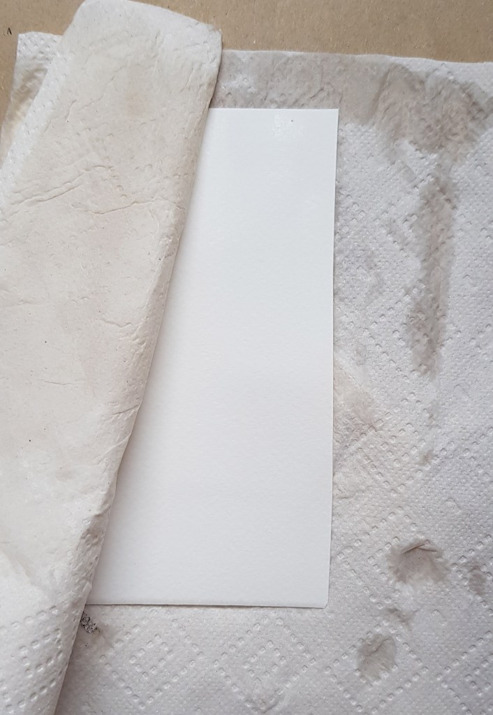 12. Remove the watercolor paper from the water and tap dry with kitchen towel. When you hold the paper against the light, there should be no shiny parts.