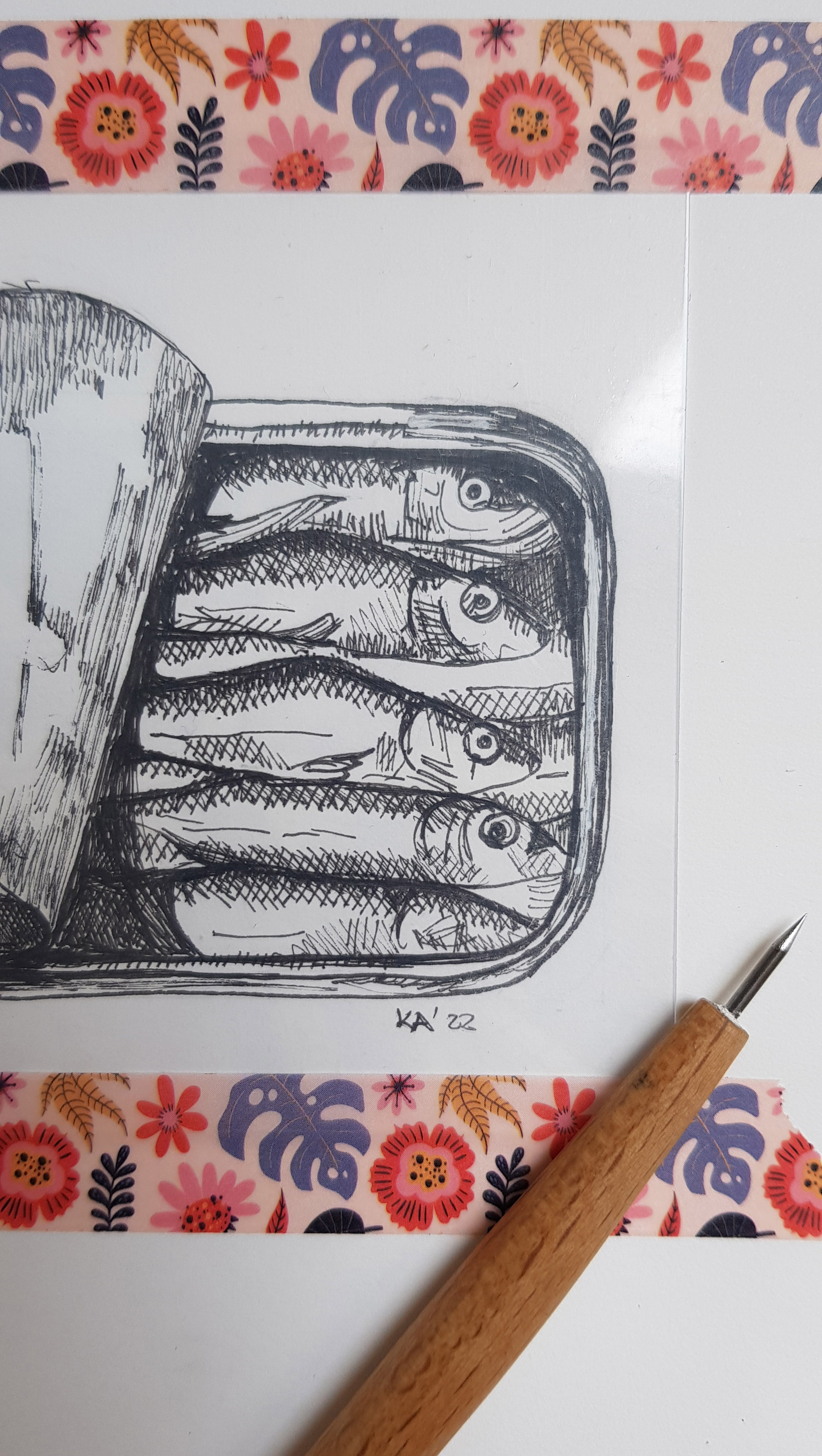 3. Stick the plastic with washi tape/sensitive tape onto the image or sketch to keep it in place while you trace it.